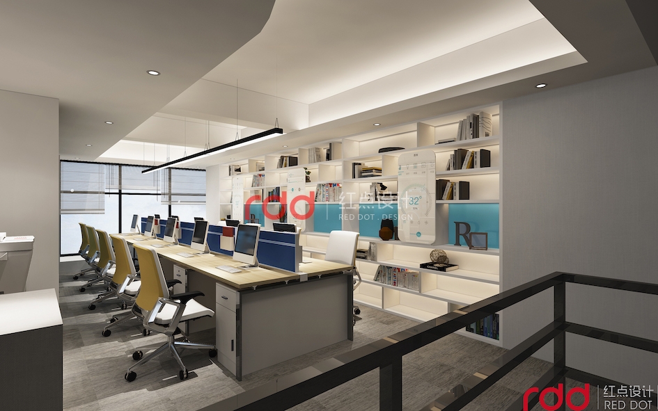 科學技術是第一生產力。在科技日新月異的今天,科技占據了主導地位。而作為一家科技公司,工作環境也是非常重要的,辦公空間以白色為基調,利用黃色的辦公椅和寶藍色辦公桌上的擋板,柜子上天藍色點綴,活躍空間的氛圍。