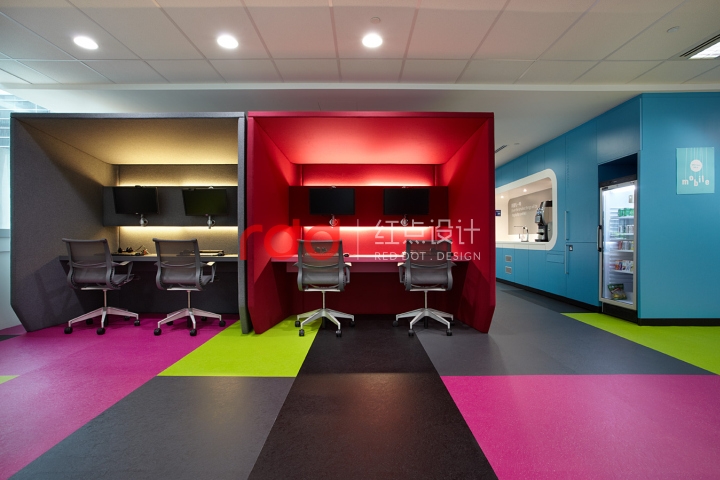 當(dāng)你走出升降機(jī)門廊,就如同開始了一段趣味之旅,帶領(lǐng)參觀者進(jìn)入一個(gè)頗具吸引力的主接待處。開放概念設(shè)計(jì)的等候區(qū)內(nèi)的咖啡角歡迎每一位到訪者。“Buzzi Booths” 擴(kuò)展在1600平方米的辦公室空間內(nèi),為那些在工作時(shí)需要獨(dú)處的人提供空間,為合作交流者自由討論和工作團(tuán)隊(duì)內(nèi)部的頭腦風(fēng)暴提供了會(huì)面地點(diǎn)。