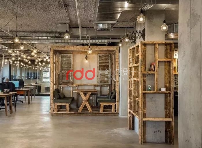 因此整體環境氛圍非常復古,混凝土墻壁與木質家具相得益彰。