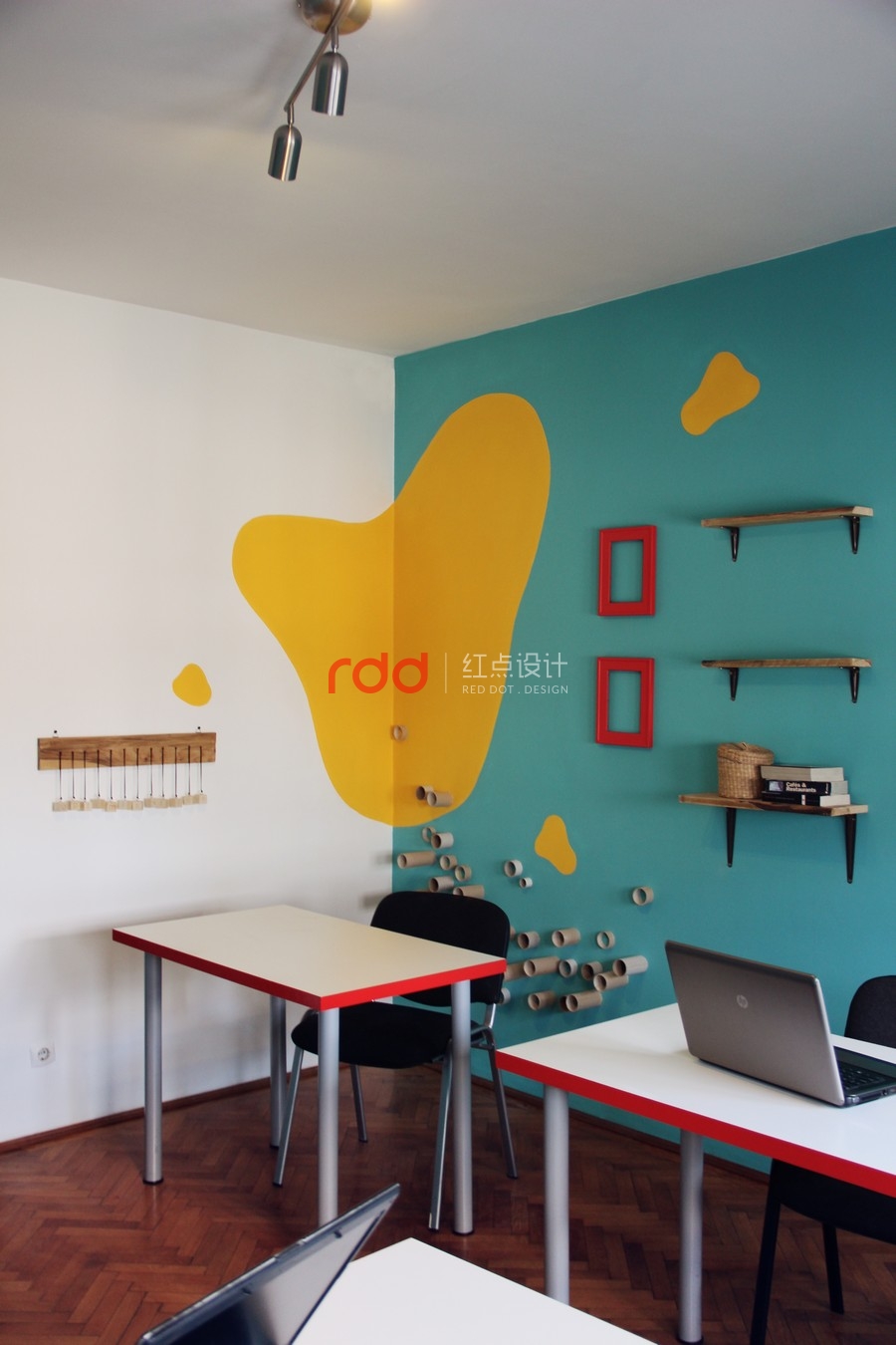 Archinteriors 設(shè)計(jì)公司的莫妮卡?柯爾杜內(nèi)亞努 (Monica Corduneanu) 最近寄給我們一組照片,是她最近的新作品, Webshake 工作室。根據(jù)設(shè)計(jì)師的想法,希望開發(fā)一個(gè)獨(dú)特的個(gè)性化空間,剛好客戶也是期望能有一個(gè)有趣和豐富的設(shè)計(jì)風(fēng)格。這就是為什么,我們用使用兩種強(qiáng)烈的色彩,青綠色和鮮黃色,利用紅色作為點(diǎn)綴。墻壁上的黃色斑點(diǎn)是公司的 logo ,我們也把這個(gè)刻在桌子上。這個(gè)空間規(guī)畫成三個(gè)房間,兩間是用員工的辦公室,另外一間則做為休息室使用。
